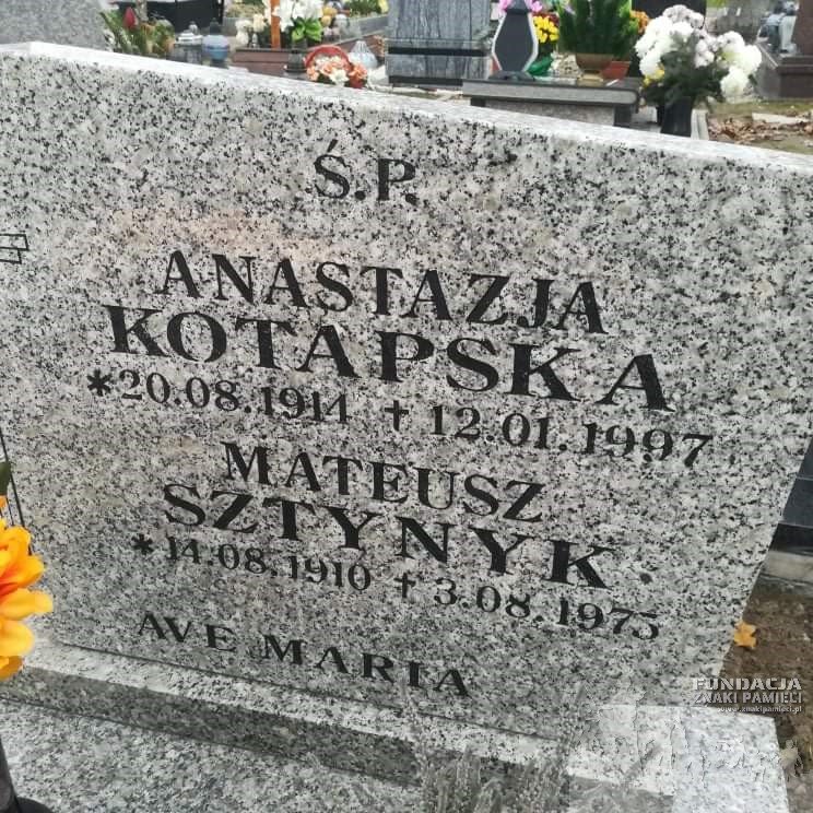 Żona Anastazja Kotapska zmarła 12.01.1997 r. i jest pochowana w grobie wraz z mężem na Cmentarzu Komunalnym w Bytomiu Odrzańskim. |