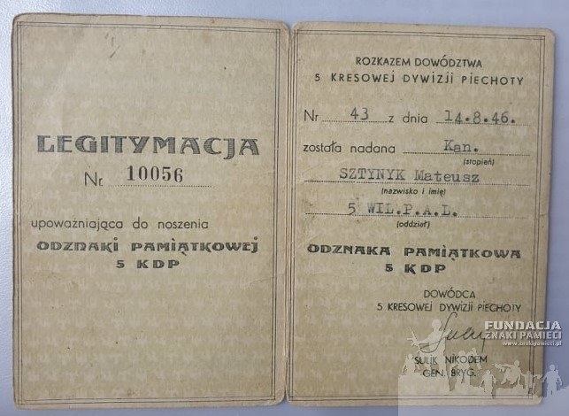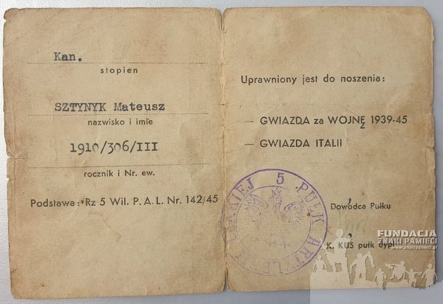 archiwum rodziny Mateusza Sztynyka; archiwum Adriana Hołobowicza; Indeks Represjonowanych IPN; krzyz.montecassino.eu; archiwum Wojskowego Biura Historycznego (sygn. VIII.801.979.16608; Kolekcja Wojskowej Komisji Archiwalnej) |