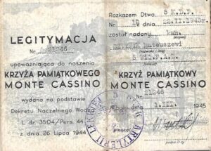 Krzyż Pamiątkowy Monte Cassino (nr legit. 21246; 1945 r.); Gwiazda za wojnę 1939-45 (1945 r.); Gwiazda Italii (1945 r.); Odznaka Pamiątkowa 5 Kresowej Dywizji Piechoty (nr legit. 10056; 1946 r.) |