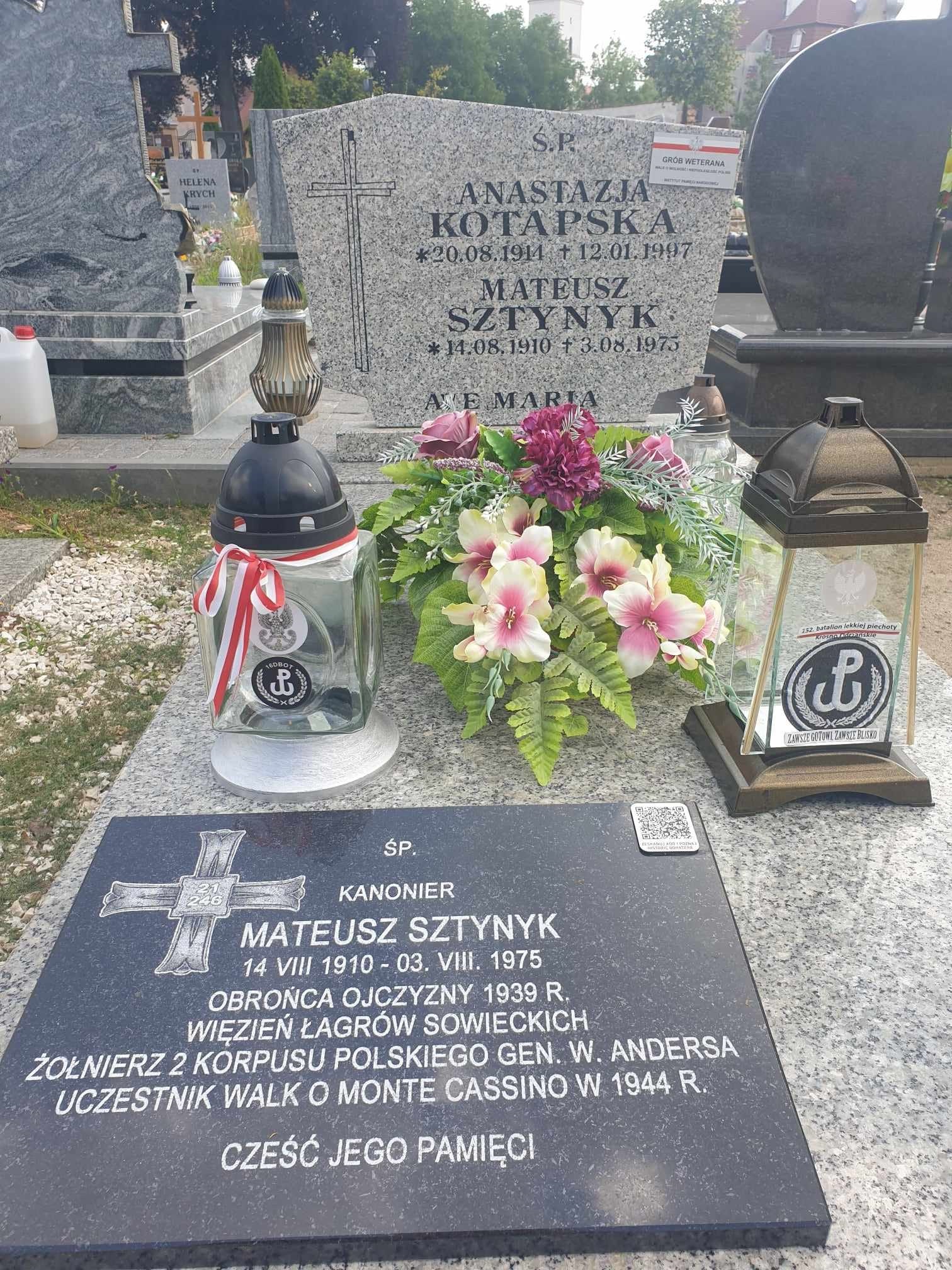 Jeszcze w Wielkiej Brytanii rozpoczął poszukiwania rodziny w powojennej Polsce. Po odnalezieniu brata Feliksa; który mieszkał na zachodzie Polski – w Byczu (woj. lubuskie) powrócił do Polski. Odwiedził brata; na krótko u niego zamieszkał; a następnie na stałe się osiedlił w Byczu wraz z żoną Anastazją. Mateusz Sztynyk lubił grać na akordeonie; który przywiózł aż z Anglii. Wraz z kolegami utworzył zespół muzyczny; grając na weselach i lokalnych imprezach. Pracował w państwowym zakładzie Cynkmet w Bytomiu Odrzańskim. |