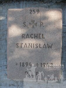 – archiwum rodzinne Czesławy Grzybowskiej – Indeks Represjonowanych – miejsce pochówku Stanisława Rachela i fotografia nagrobku : |