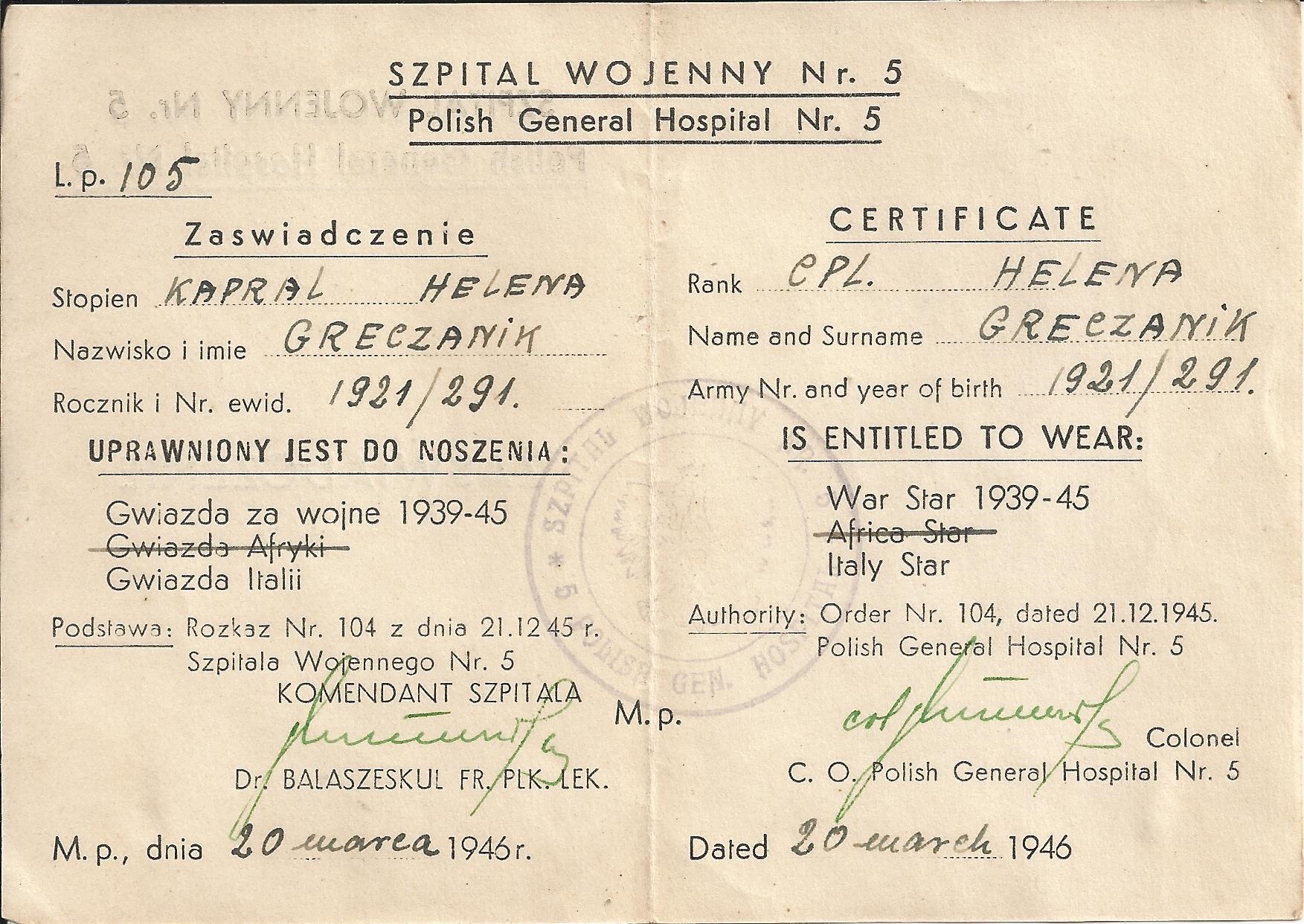 1. Helena Greczanik z d. Langer – zdjęcie z 2 Korpusu |