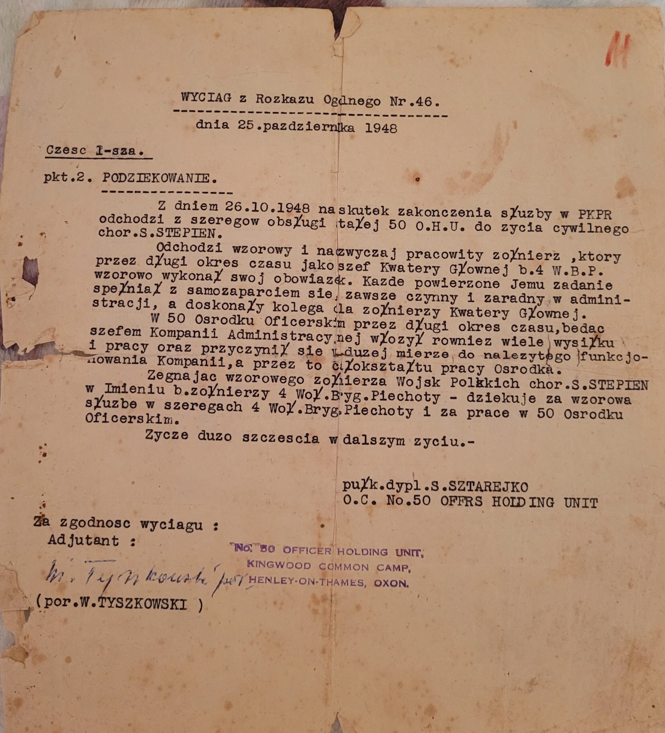 W ewidencji 2 Korpusu występował jako Szczepan Stempień (np. w legit. Krzyża Pamiątkowego Monte Cassino) lub Szczepan Stępień (np. w opinii płk. dypl. S. Sztanejko) Żona Julia (ur. 17.07.1915, Sapożyn, pow. Równe, woj. wołyńskie) |