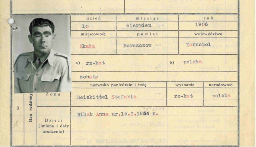 1. ppor. Bolesław Rihak – oficer 2 Korpusu, zdjęcie z kwestionariusza repatriacyjnego, maj 1947 r. |
